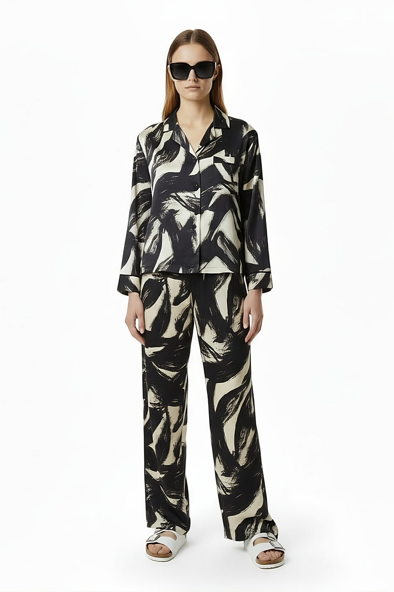 EASY PANT Bleeding Flowers Ecrublack